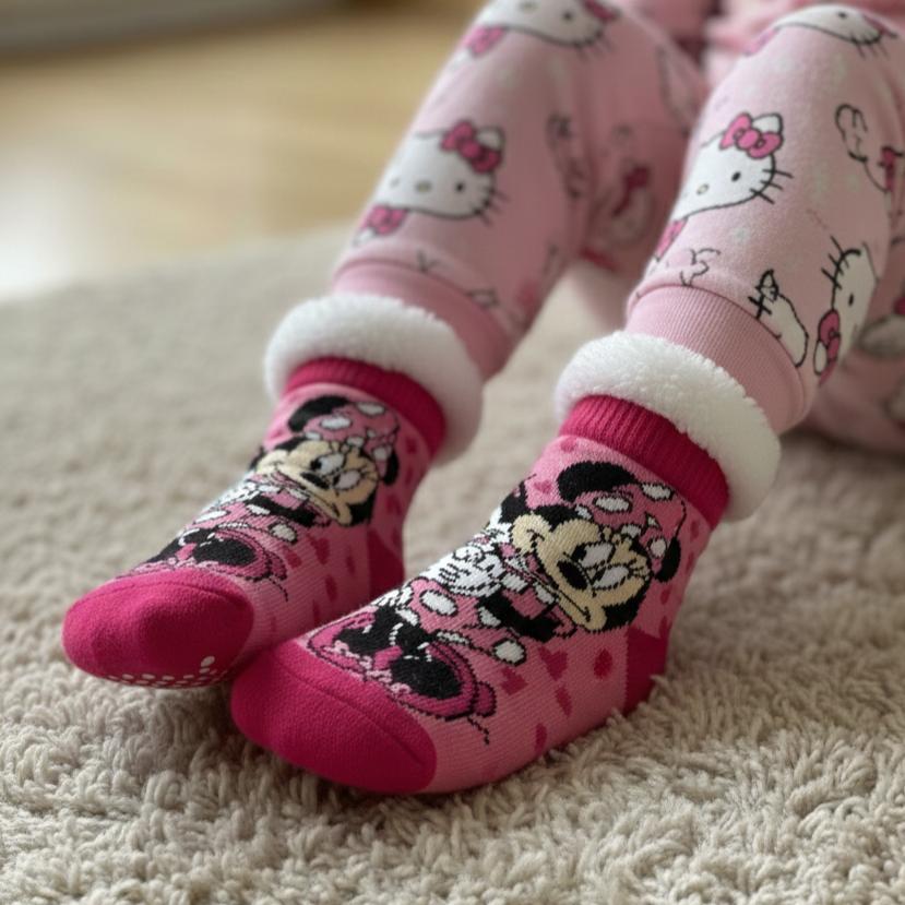 Calzini in morbido peluche per bambini con personaggi divertenti e dettagli antiscivolo sulla pianta del piede. Ogni paio combina comfort e sicurezza, ideale per muoversi liberamente in casa senza rischi di scivolamento. La pelliccia avvolgente mantiene i piedi caldi durante le stagioni fredde, mentre il design colorato con vari personaggi cattura l'attenzione dei più piccoli. Perfetti come regalo o per l'uso quotidiano, garantiscono praticità e stile.