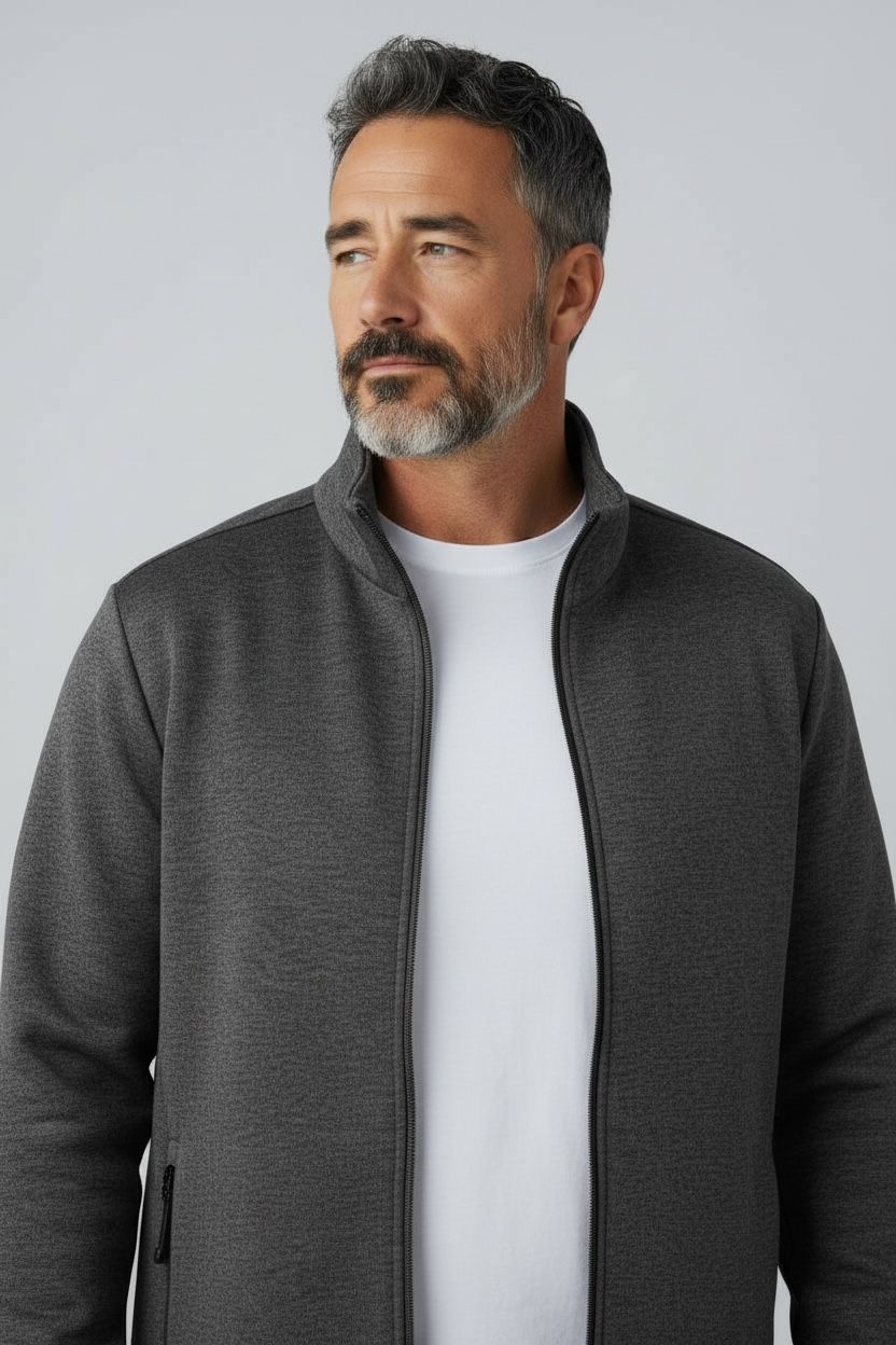 Felpa Raoul in cotone mélange con interno in pile termico, perfetta per le stagioni fredde. Caratterizzata da zip centrale, due tasche laterali con chiusura lampo e polsini elasticizzati per una vestibilità confortevole. Il pile interno garantisce isolamento termico senza aggiungere volume, mantenendo una silhouette moderna e sartoriale. Ideale per uno stile casual-chic che non scende a compromessi sulla funzionalità.